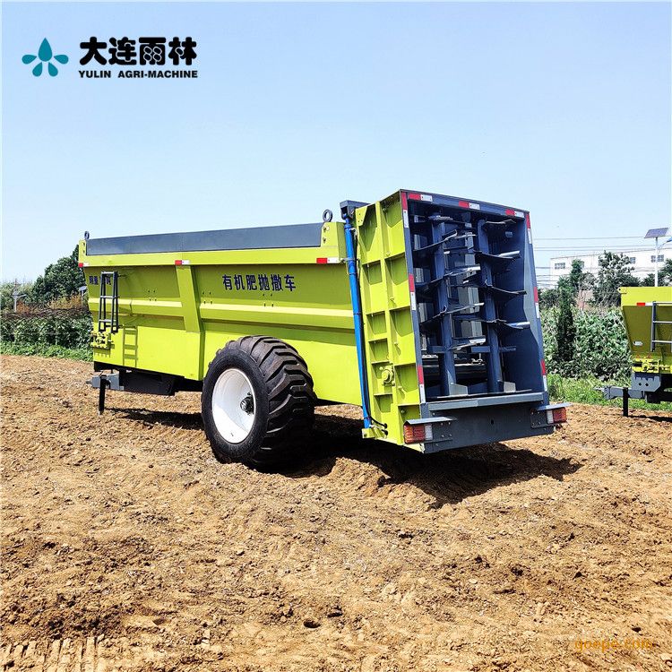 固体有机肥是一种以拖拉机为动力,把发酵后的厮肥(包括堆肥,沤肥)进行抛撒还田的新型农机具,该机利用拖拉机为动力输出,带动车厢内部的输送链自动把肥料向后输送,通过高速旋转的抛撒碎轮对肥料进行打碎,均匀抛撒还田。达到提高施肥效率,降低劳动强度,改善土壤结构的目的。
